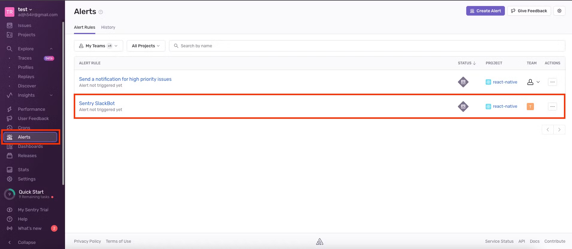 10. 구성한 내용은 Alerts 탭 내에서 확인하고 수정이 가능합니다.