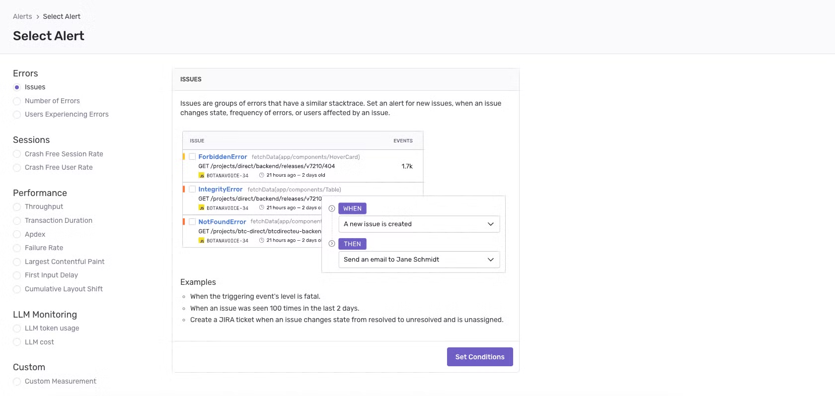 | Errors | Issues | 새로운 오류나 문제가 발생했을 때 알림 |