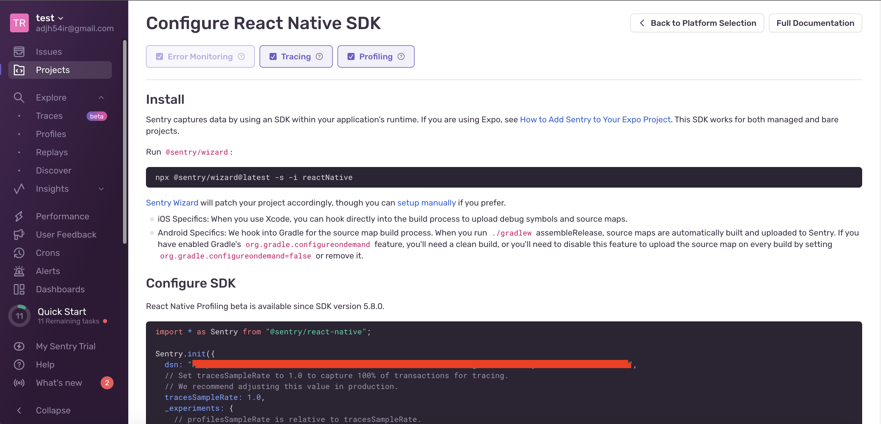 1. React Native 프로젝트 내에 @sentry/wizard를 설치합니다.