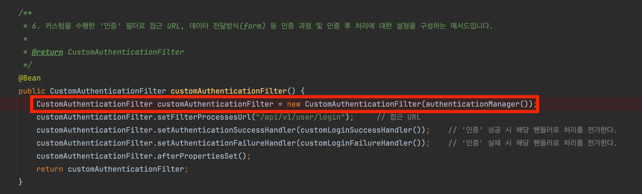 - 해당 로그인의 인증을 위해서 아이디/비밀번호를 확인하는 곳은 authenticationManage() 메서드 내에서 이를 수행합니다.