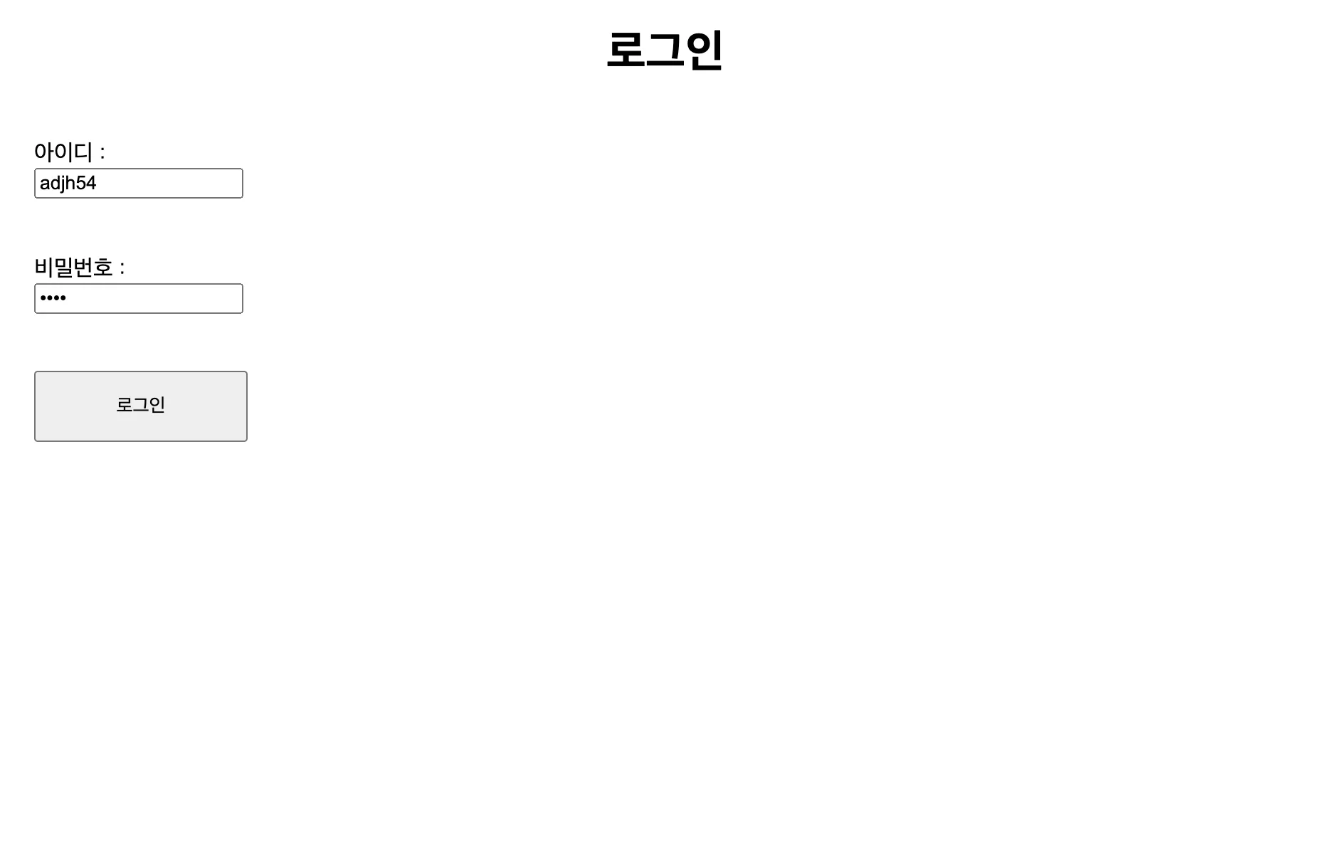 - 클라이언트는 아이디와 비밀번호를 입력하고 ‘로그인’ 버튼을 누르면 입력한 아이디, 비밀번호를 기반을 API 통신을 수행합니다. - 아래에서는 간단한 코드를 통해서 흐름에 대해서만 확인해 봅니다.