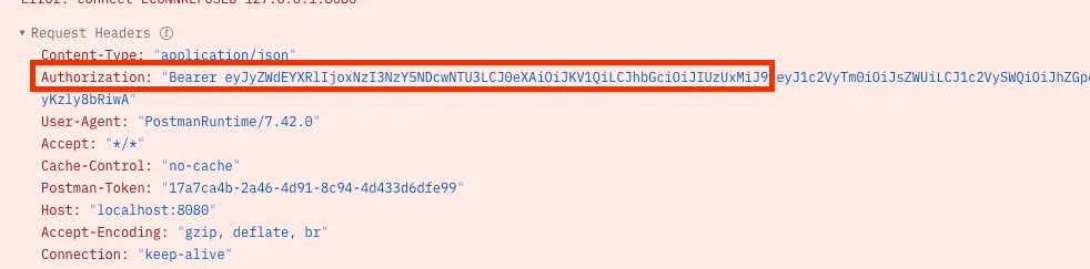 6. 클라이언트가 API Server로 API 통신 시 JWT를 Header에 추가하여 호출합니다. - 이를 통해 인가받은 사용자만 API 통신을 수행할 수 있음을 확인합니다.