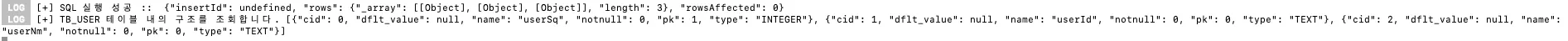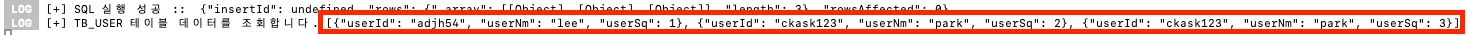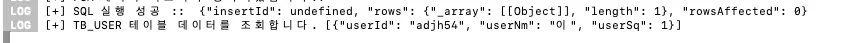 console.log(`[+] TB_USER 테이블 데이터를 조회합니다.`, execute)