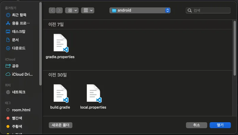 1. 프로젝트 > android 폴더를 열어줍니다.