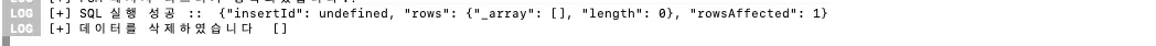 console.log("[+] 데이터를 삭제하였습니다 ", execute)