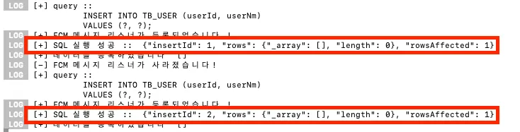 console.log("[+] 데이터를 등록하였습니다 ", execute)