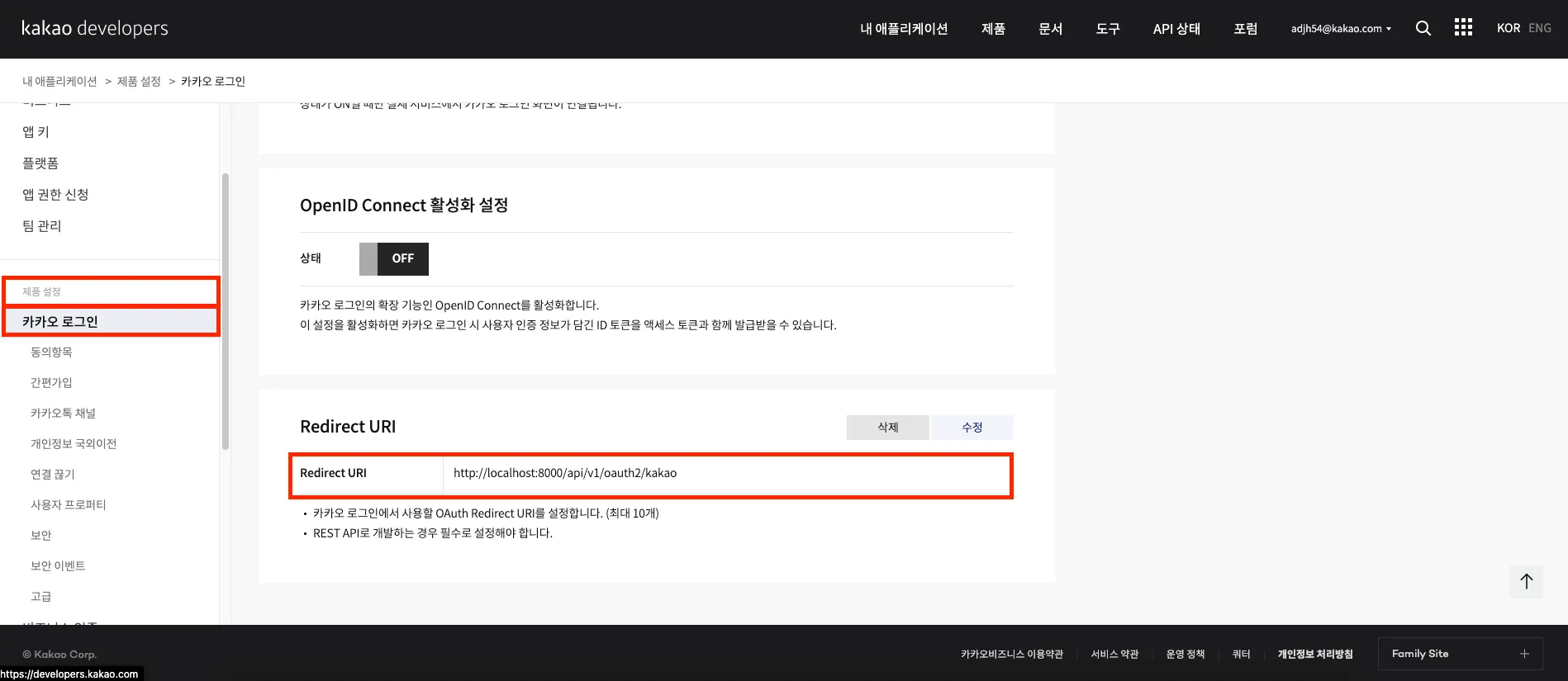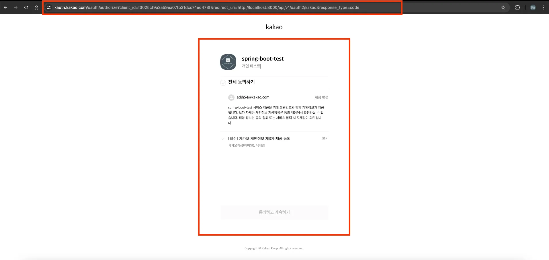 3. 위에 정보들을 기반으로 웹 페이지 내에 접속하면 카카오톡 로그인 접속이 됨을 확인되었습니다.