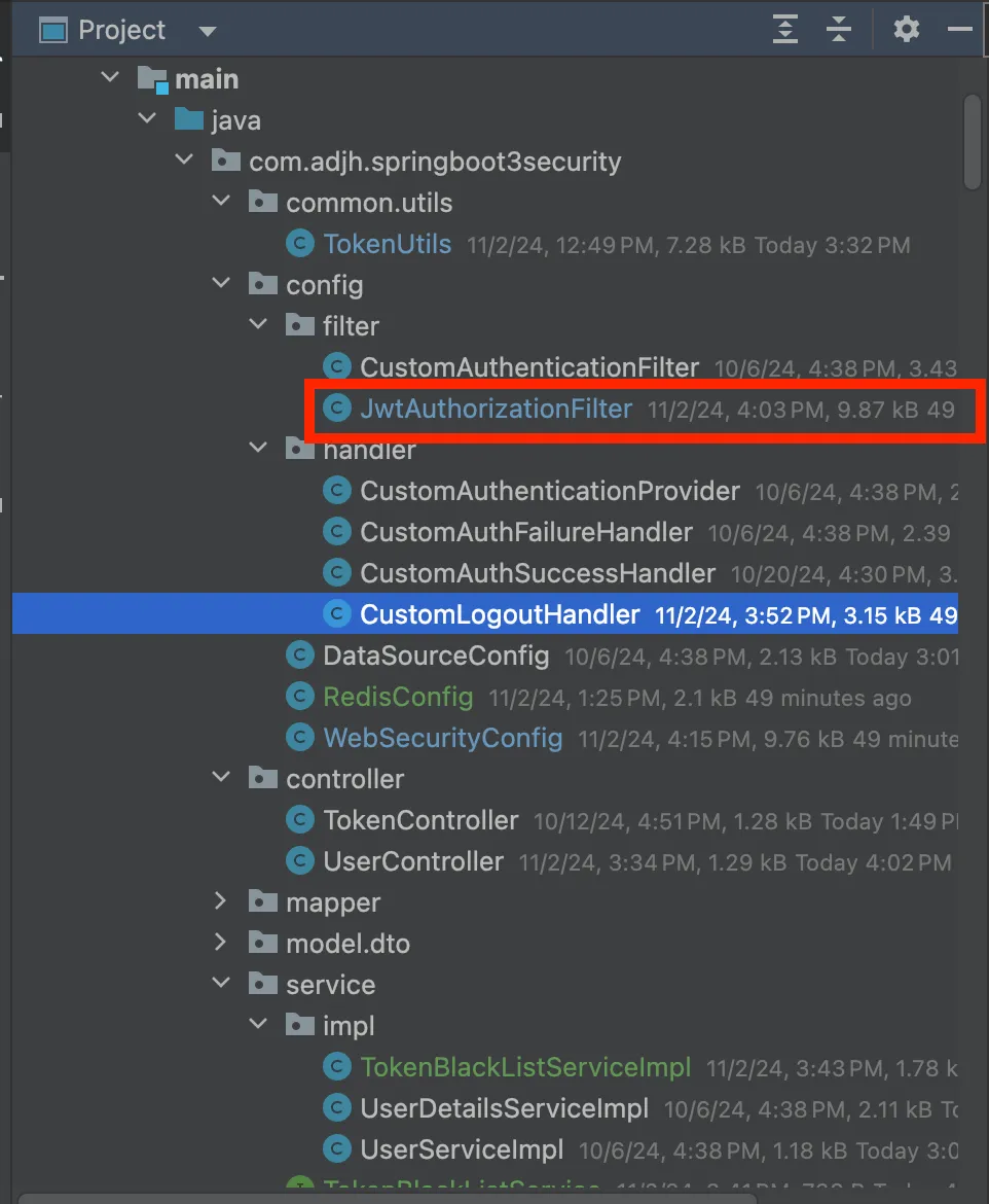 2. TokenFilter 내에서 Redis의 Black List를 조회합니다.