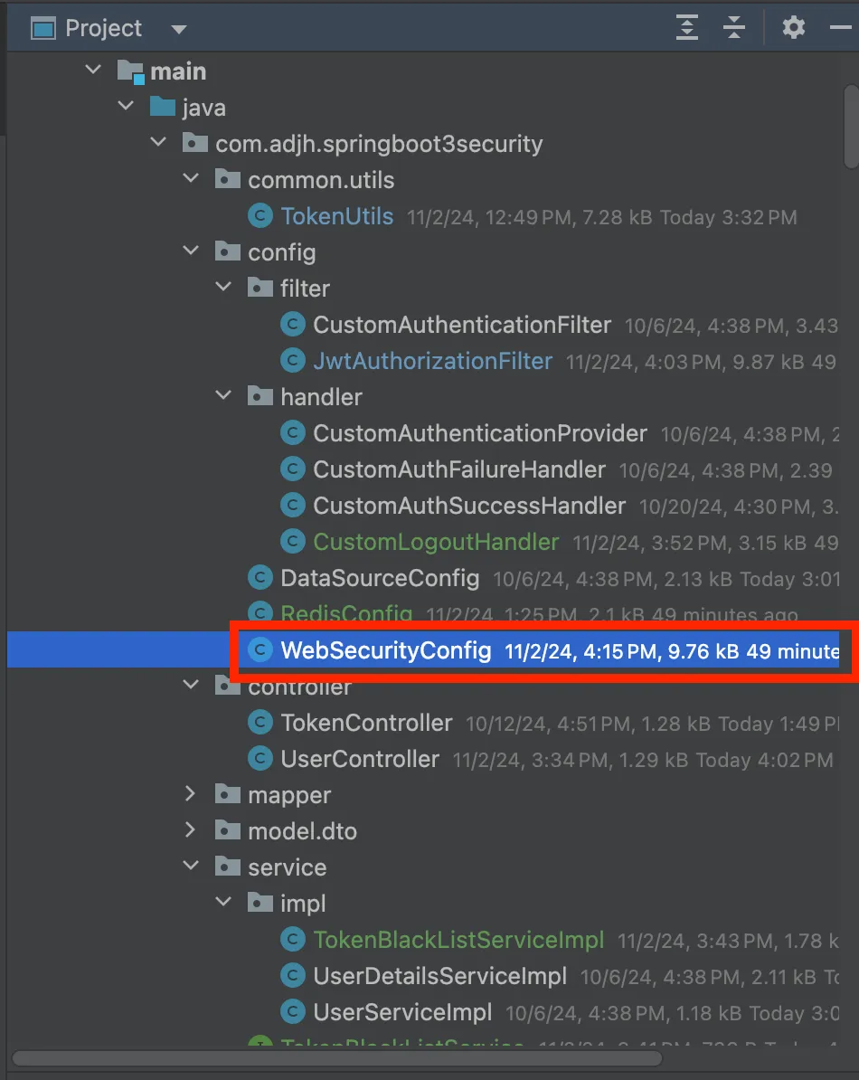 - 기존에 Spring Boot Security 3.x + JWT 환경을 구성한 형태에서 로그아웃을 테스트합니다. - 아래의 환경 및 소스코드를 확인하여 구성한 뒤 이에 적용합니다.