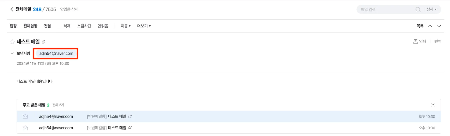 💡 아래와 같이 Naver을 통한 메일 전송이 잘됨을 확인하였습니다.