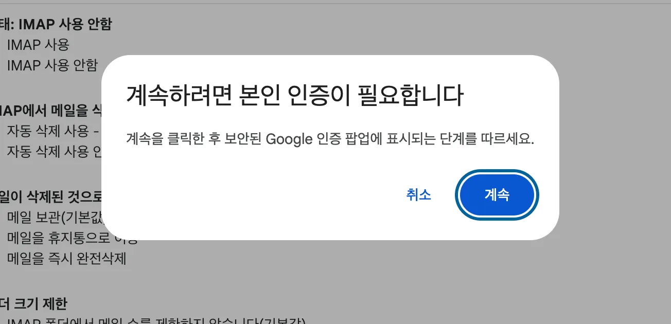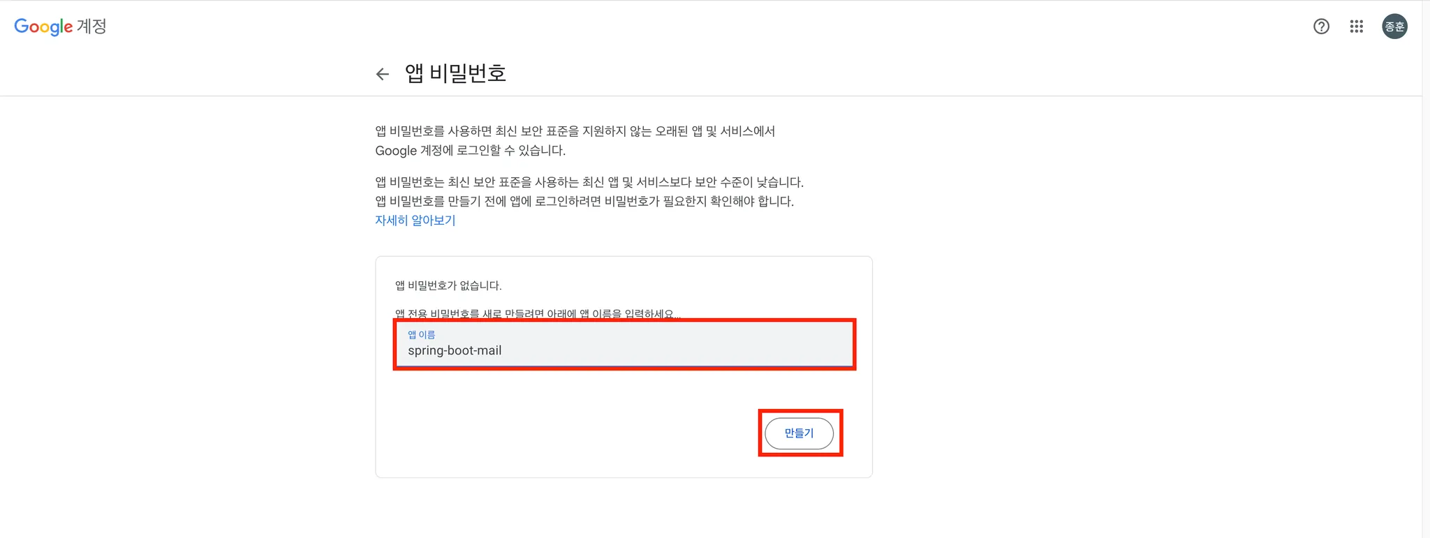 3) Google Gmail SMTP 활성화 과정 -2 : SMTP 앱 비밀번호 발급
