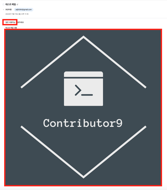 - Thymeleaf 템플릿 엔진을 사용하여 동적 HTML 콘텐츠를 생성합니다. 1. subject : 전달받은 객체로 메일 제목을 설정합니다. 2. message : 전달받은 객체로 메일 내용을 설정합니다. 3. userType : 전달받은 객체 중 “target”이라는 값에 따라서 유동적으로 텍스트를 출력하도록 구성하였습니다. 4. ogoImage : 프로젝트 static/images/logo.png에 있는 파일을 불러와서 base64로 변환하였습니다.