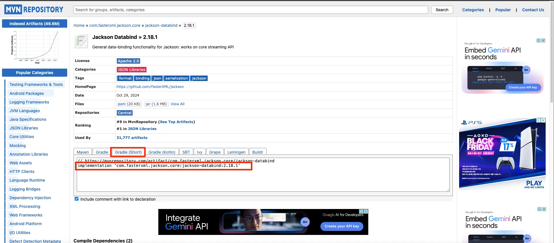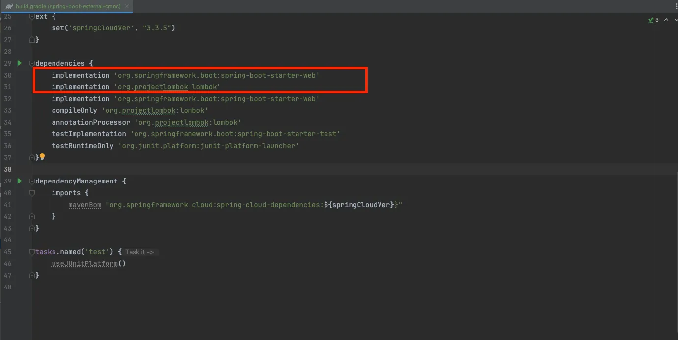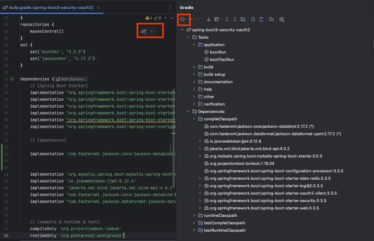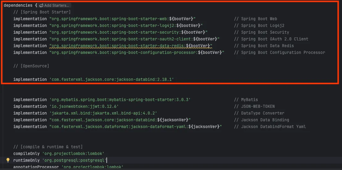 - build.gradle 파일의 dependencies 내에 각각 의존성을 추가하였습니다
