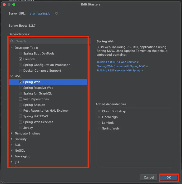 💡 IntelliJ에서 spring starter initializr로 의존성 추가 -1 : Edit Starters.. 버튼
