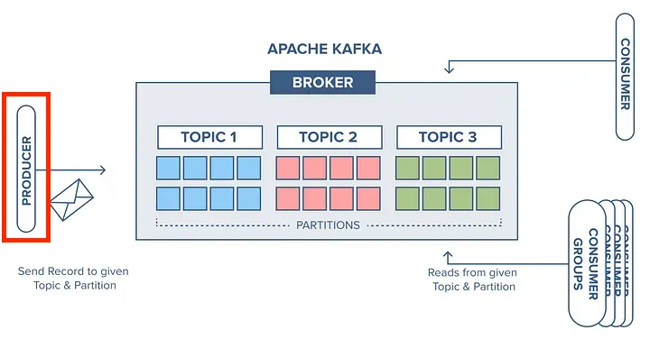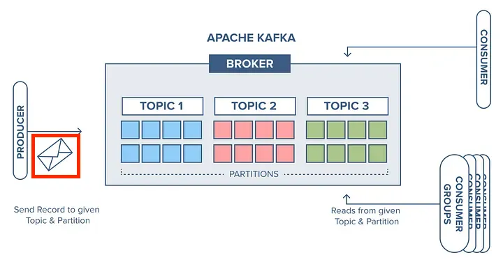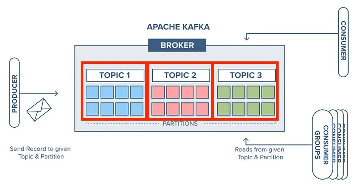 - Kafka에서 메시지가 저장되는 논리적인 채널 또는 피드의 이름을 의미합니다. - 생성자(proceduer)가 메시지를 발행하고 소비자(proceduer)는 이를 구독하는 대상이 됩니다. - 하나의 토픽은 여러 개의 파티션으로 분할될 수 있습니다.
