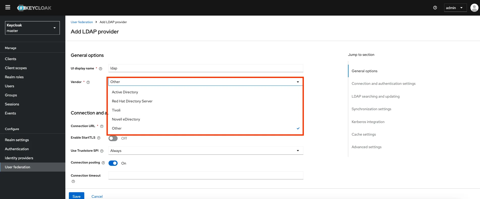 💡 LDAP & AD 연동 : Use federation > Add LDAP Provider