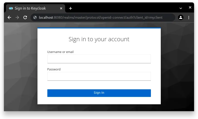 3. 로그인 페이지 오픈 : Keycloak → 사용자 - 애플리케이션에서는 사용자를 Keycloak 로그인 페이지로 리다이렉트 합니다.