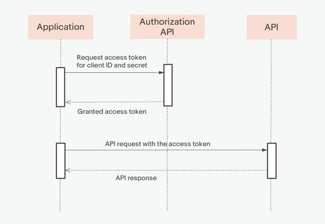 1. 클라이언트 ID와 시크릿으로 액세스 토큰 요청 (Request access token for client ID and secret) - 클라이언트가 자신의 ID와 시크릿을 사용하여 인증 서버에 액세스 토큰을 요청합니다.