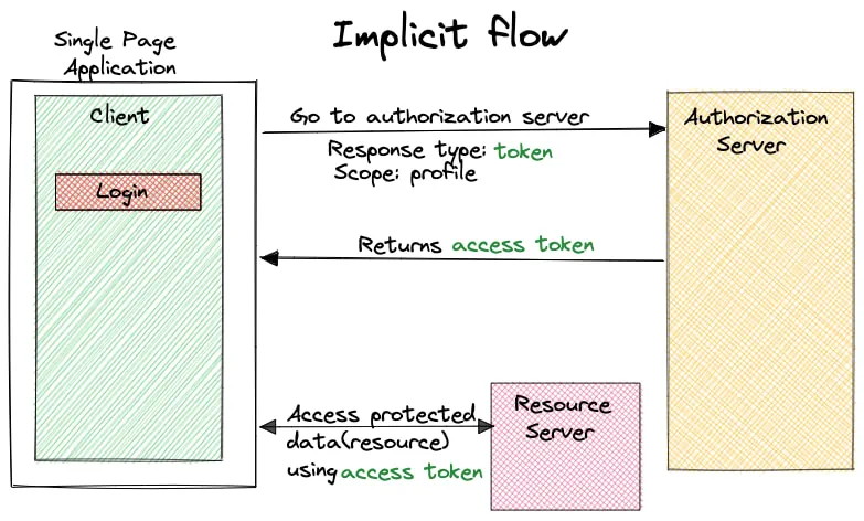 - 간소화된 인증흐름으로 인가 코드(Auth Code) 없이 직접 액세스 토큰을 받아서 인증을 수행하는 방식을 의미합니다.