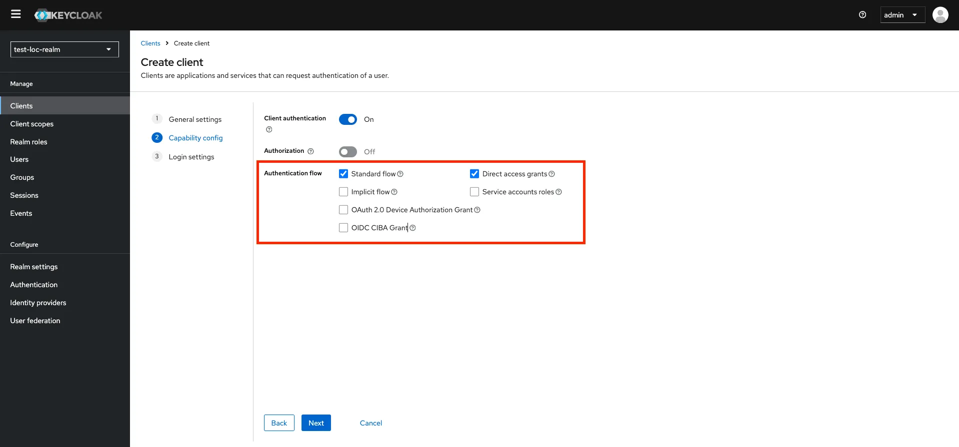 💡 [참고] Keycloak내에 Client를 설정할 때, OIDC를 선택한 경우 인증 흐름(Authentication flow)을 선택하여 인증 방식을 지정합니다.