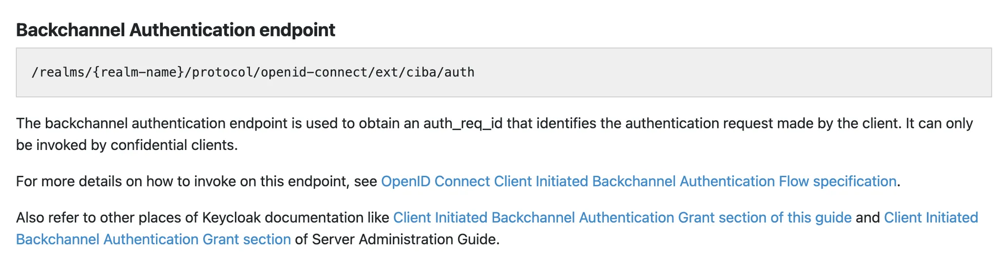 - OpenID Connect의 확장 기능으로, 클라이언트가 사용자의 직접적인 상호작용 없이 인증을 시작할 수 있게 해주는 인증 방식입니다. - 사용자가 인증을 요청한 디바이스(예: ATM, 웹사이트)와 실제 인증이 이루어지는 디바이스(예: 스마트폰)가 물리적으로 분리되어 있습니다. - 이는 백 채널(서버 간 통신)을 통해서 이루어지는 특징을 가지고 있습니다.