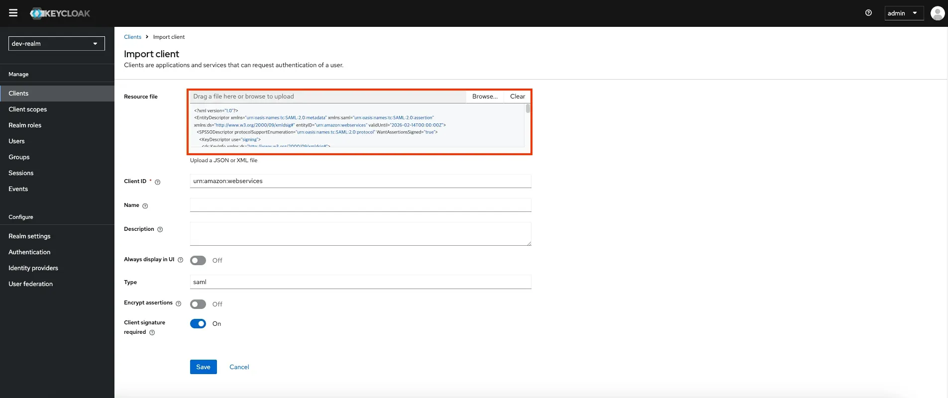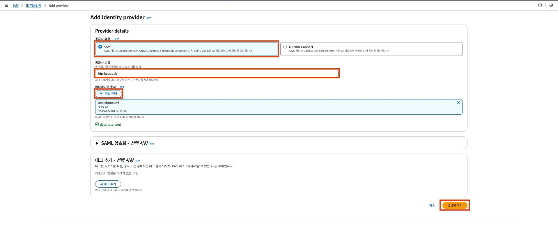 - SAML 2.0 프로토콜을 통한 안전한 인증 정보 교환 설정하며 Keycloak과 AWS 간의 신뢰 관계 구축을 위한 기초 설정을 합니다.