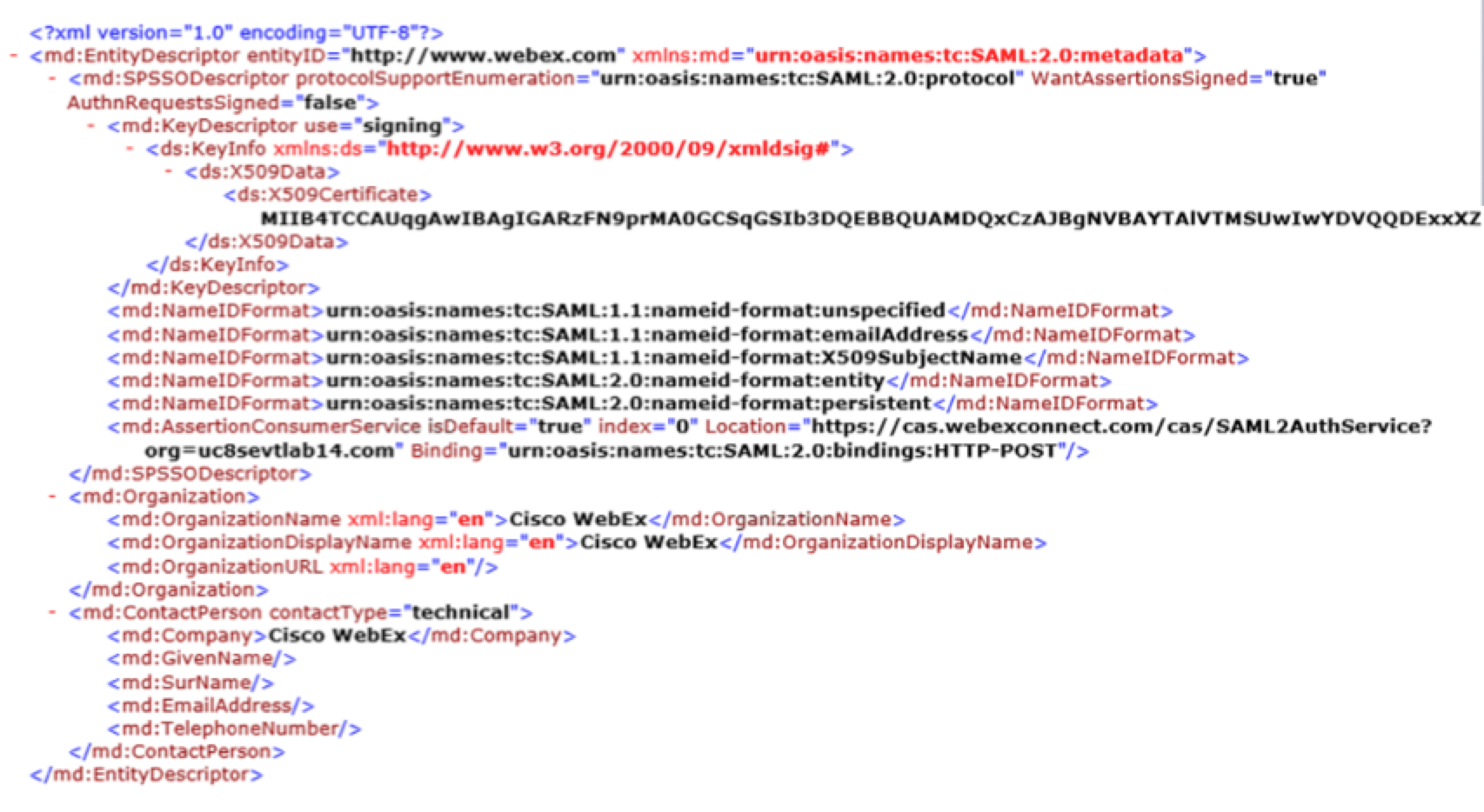 - IdP와 SP 간의 신뢰 관계 설정과 통신에 필요한 정보를 담고 있습니다.