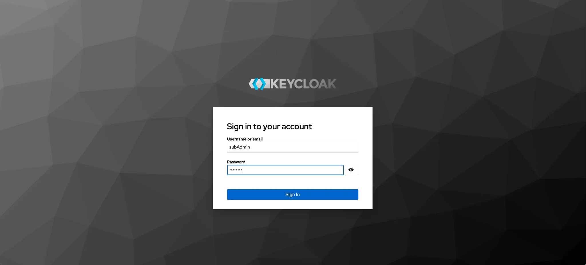 💡 위에 구성한 경로로 접근하였을 때 test-loc-realm이라는 realm에 접근하는 로그인 화면이 출력되었습니다.