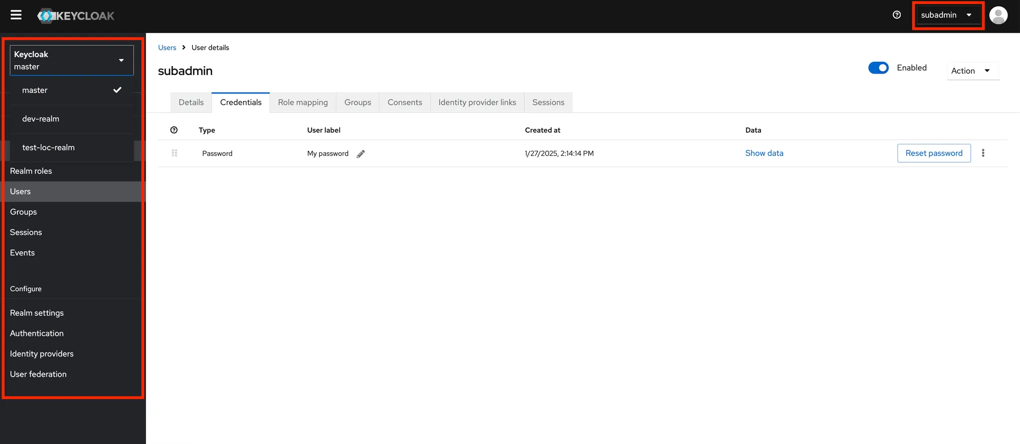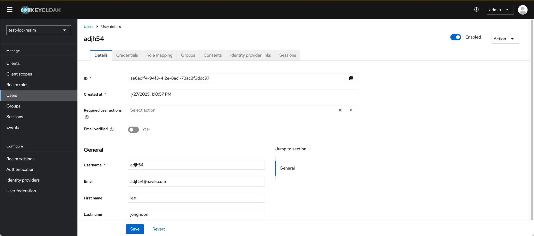 Realm의 활성화 여부를 설정합니다. 체크하면 즉시 사용 가능한 상태가 됩니다.