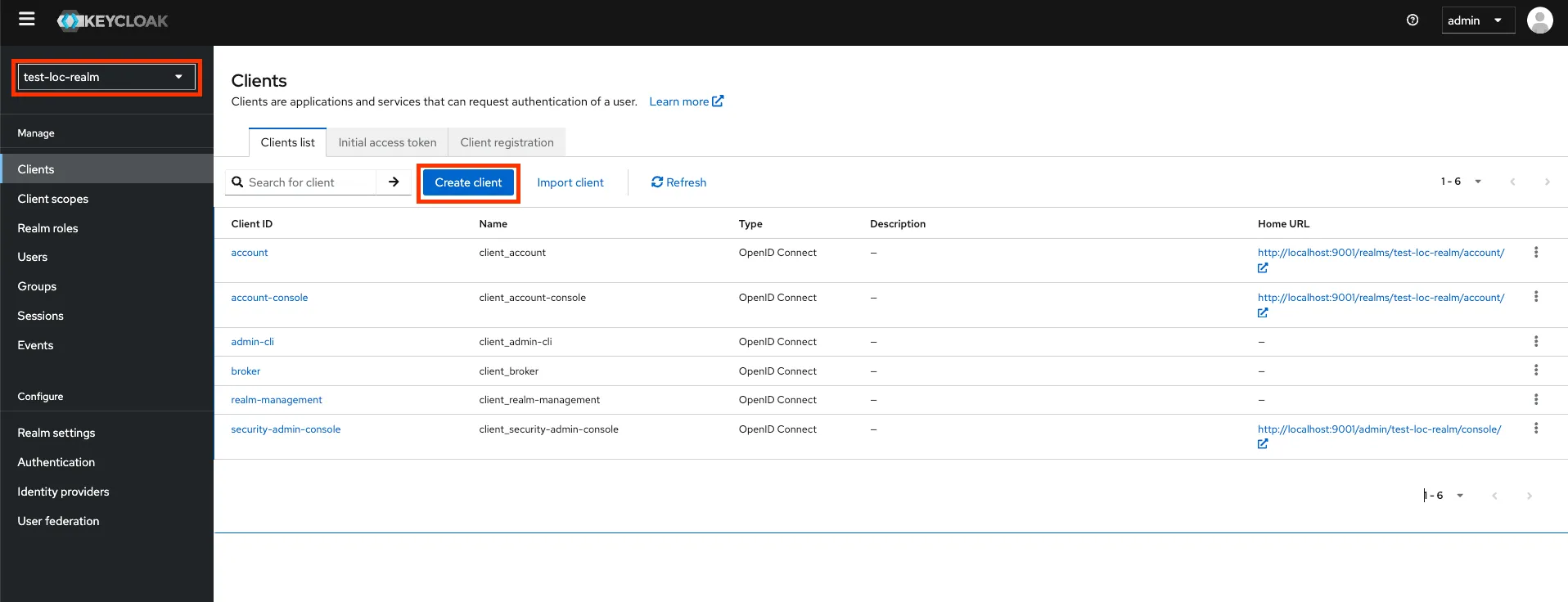 2.1. Create client를 선택합니다.