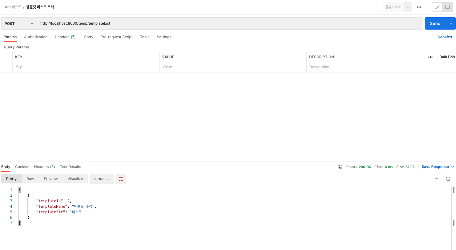 * @return ApiResponseWrapper<List < TemplateVO>> : 응답 결과 및 응답 코드 반환