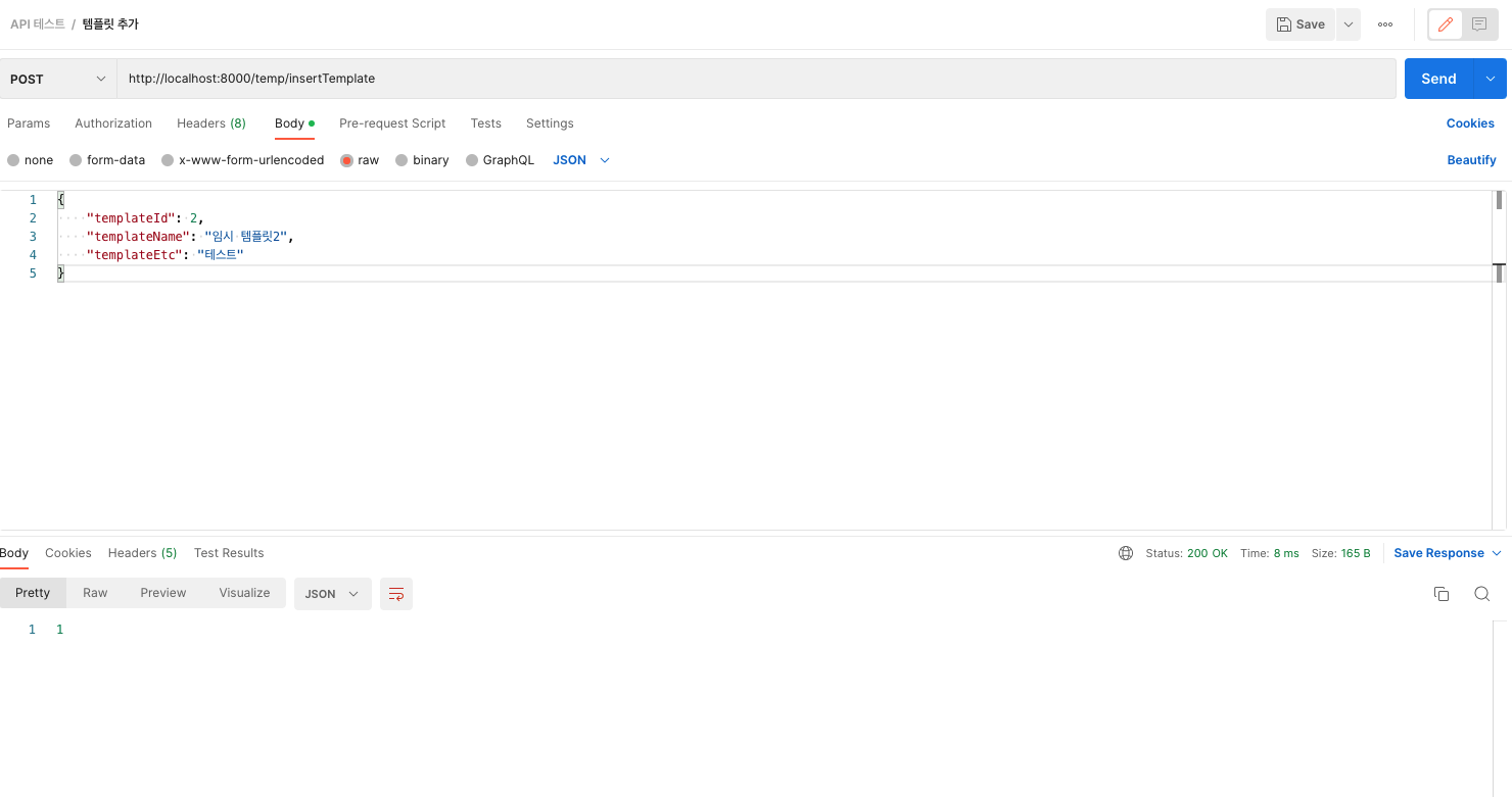 💡 해당 테스트는 구성한 프로젝트를 기준으로 Postman 툴을 이용하여서 API 테스트를 진행하였습니다