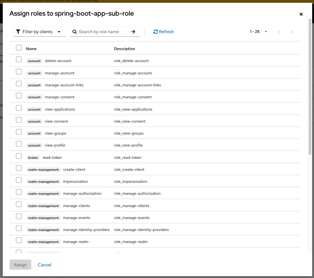 - Keycloak에서 Role로 부여할 수 있는 역할들입니다.