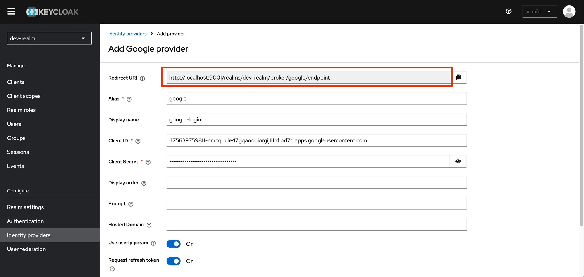 - 이 과정을 통해서 사용자 -> Keycloak -> Google -> Keycloak -> 클라이언트 애플리케이션 과정으로 처리가 됩니다.