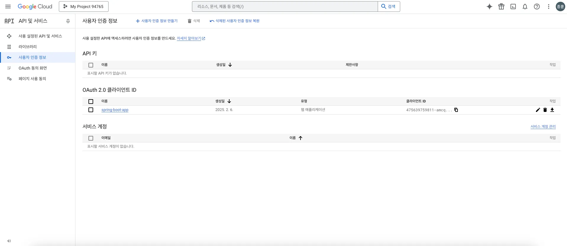 - OAuth 2.0을 기반으로 구글 로그인과의 연동을 수행하기 위해서 OAuth 클라이언트를 생성합니다.