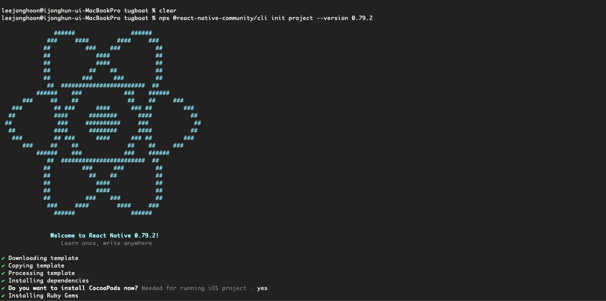 $ npx react-native init project --version 0.79.2 --template react-native-template-typescript --legacy-peer-deps