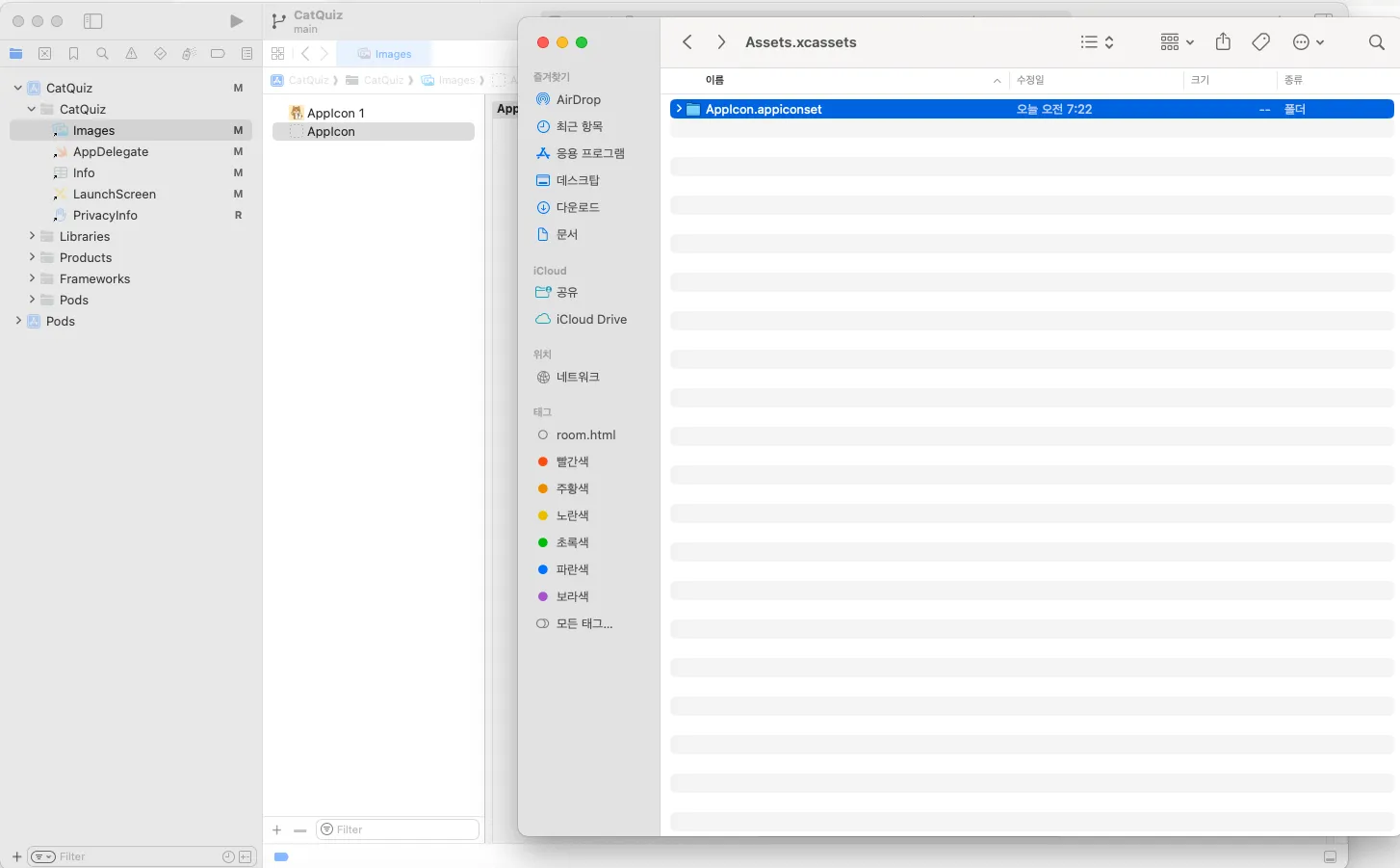 2. 다운로드 한 AppIcons 폴더 내에 Asset.xcassets로 접근하여 파일들을 확인합니다