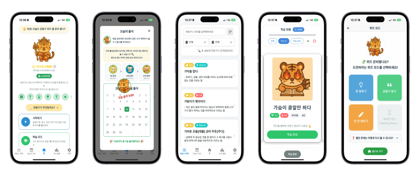 - 그렇기에 문장을 이해하는 능력인 문해력을 기르기 위해서는 이를 이해하는 게 필수적이라고 생각이 듭니다. 그렇기에, 저 또한 문해력이 부족한 부분이 있다고 생각하여서 자주 일상생활에서 이용되는 500개의 주요한 관용구를 수집하였고 학습과 퀴즈로 이를 이해하기 위해 이렇게 앱을 만들게 되었습니다.