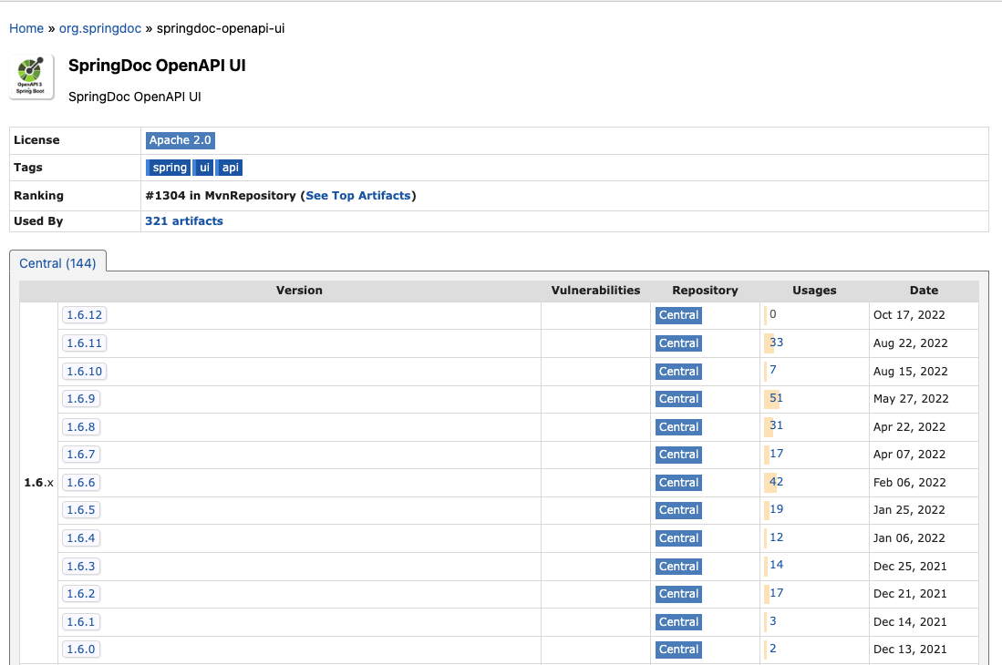 [출처] https://mvnrepository.com/artifact/org.springdoc/springdoc-openapi-ui