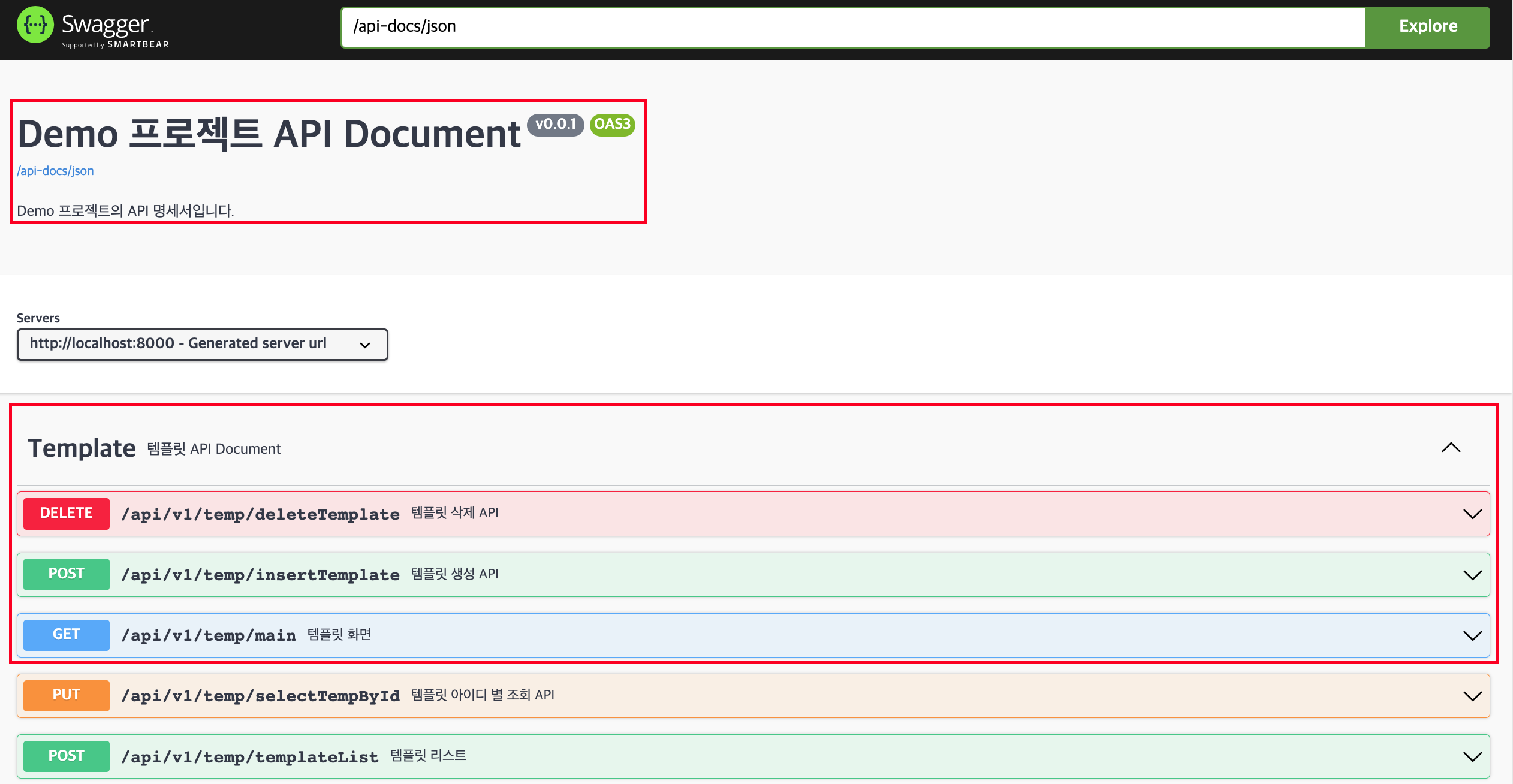 @Tag(name = "Template", description = "템플릿 API Document")
