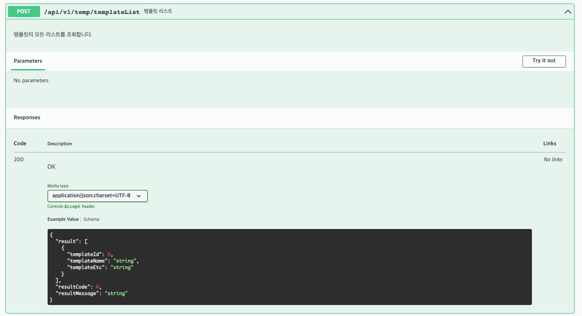 * @return ApiResponseWrapper<List < TemplateVO>> : 응답 결과 및 응답 코드 반환