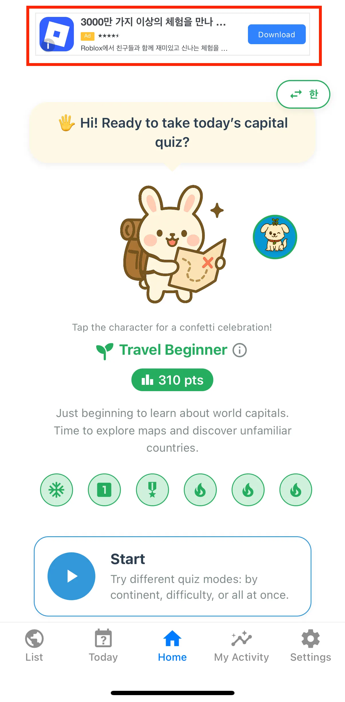 - 아래와 같이 전면 광고가 출력이 됨을 확인하였습니다.