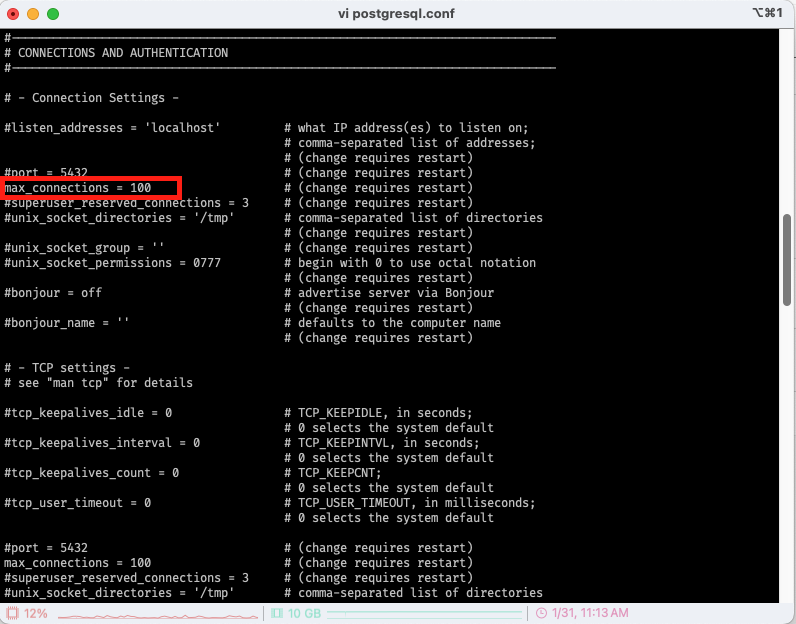 💡 PostgreSQL의 경우 환경 파일은 아래의 경로를 통해서 최대 Connection Pool을 확인할 수 있습니다.