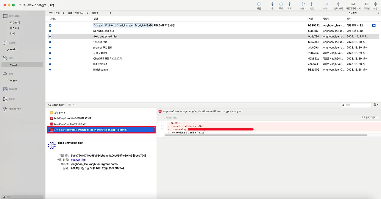 - 특히, 이미 원격 저장소 내에 Commit & Push 작업을 수행하면 저장소 내에 이력으로 모든 기록이 남기 때문에, 잘못 올린 한 번 잘못 올린 민감정보는 파일을 삭제하더라도 히스토리에 남아있습니다. - 그렇기에, 원격 저장소 내에 민감정보를 올리지 않도록 해야 합니다.
