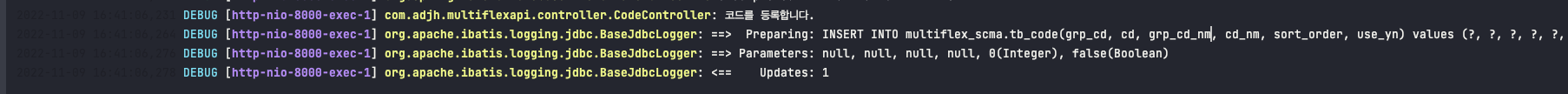 log.debug("코드를 등록합니다.");