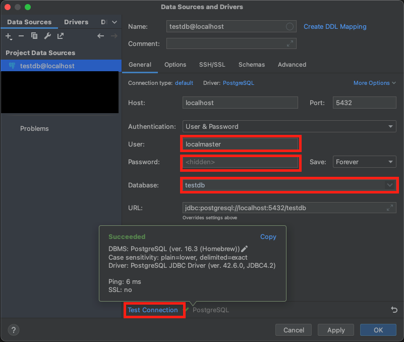 - testdb라는 데이터베이스를 생성하고, localmaster라는 사용자를 생성합니다.