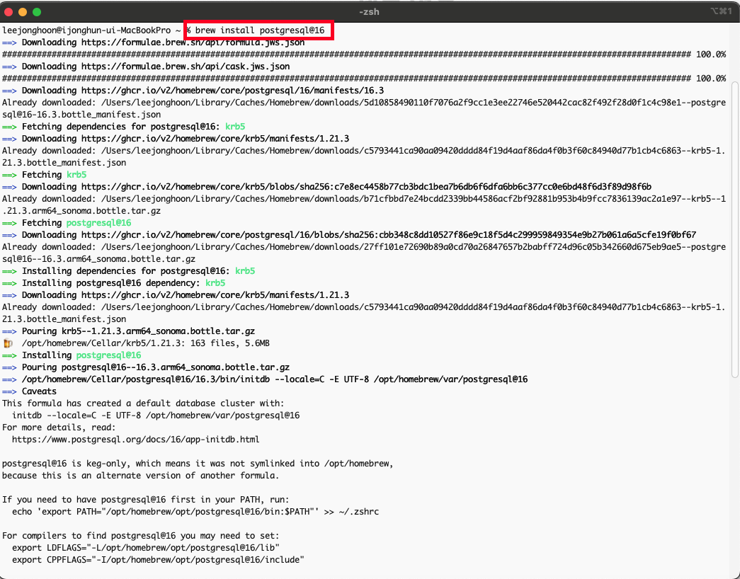 💡 예시로 postgresql@16 버전을 설치하였습니다.
