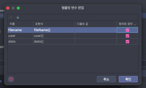 | ${PACKAGE_NAME} | 새 파일이 생성되는 패키지 이름 |