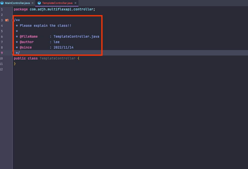 💡 주석 템플릿은 간단한 형태로 구성을 하였습니다