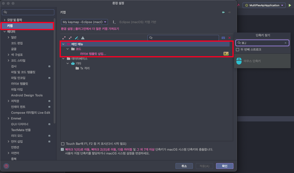 💡 키맵(Keymap) → 메인 메뉴(Main Menu) → 코드(code) → 라이브 템플릿 삽입… 단축키로 이용됩니다.